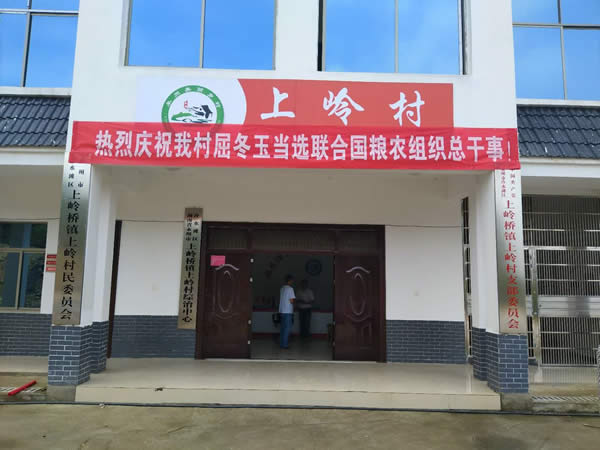 图一:屈冬玉博士家乡悬挂横幅表示庆贺