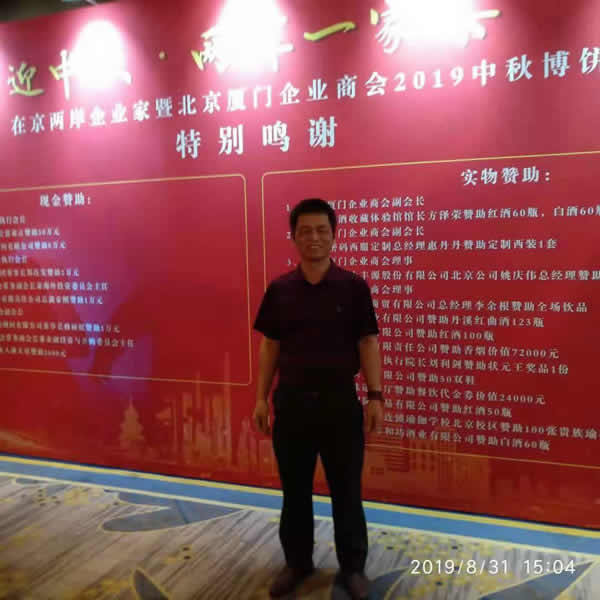 2019年8月31日, 由北京厦门企业商会、东方环岛集团联合主办的“迎中秋-两岸一家亲在京两岸企业家暨北京厦门企业商会2019中秋博饼联谊会”在北京嘉里大酒店隆重举行。北京厦门企业商会会长蒋清林致欢迎词,中国民族贸易促进会会长蓝军出席开幕式并致辞。出席此次活动的有隋绳武、刘顺达、李昭玲、陈春玖、路政闽、朱守道、张文祥、郑昭红、兰海滨、赵刚、陈联真……,海峡两岸知名企业家等600余人,共同出席了“迎中秋-两岸一家亲在京两岸企业家暨北京厦门企业商会2019中秋博饼联谊会”的活动,以此来迎接我国传统的中秋佳节的到来。