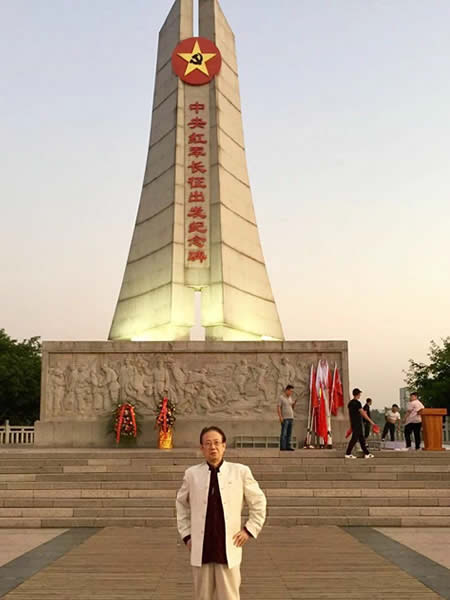 图六:刘建吉在共和国摇篮-红军长征出发地瑞金纪念碑前