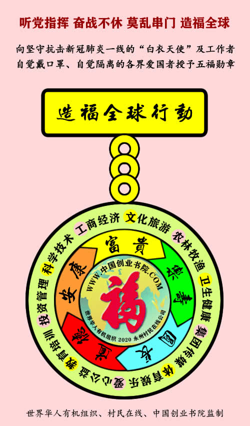 520世界爱心日发起人、教育部主管“陶行知教育基金会”新时代文化教育专项基金副秘书长、《村民在线》总编唐良闻同志从四川向凤凰园个体党支部及滨湖大酒店来电表示敬意,并给甄仕荣同志发来了陶行知先生徒孙、重庆知名民间中医黄志大夫(北大在读美国高校博士)防治新冠肺炎的药方,还在线给甄仕荣、李丽丽二位同志与滨湖大酒店领导、员工颁发了世界华人有机组织、村民在线、中国创业书院联合设计的“造福全球行动”五福勋章。他说:作为中共创始人李达同志家乡的基层党组织——凤凰园个体党支部与滨湖大酒店在党和国家最需要的关键时刻,挺身而出,显露英雄本色,堪称我党基层组织时代楷模。