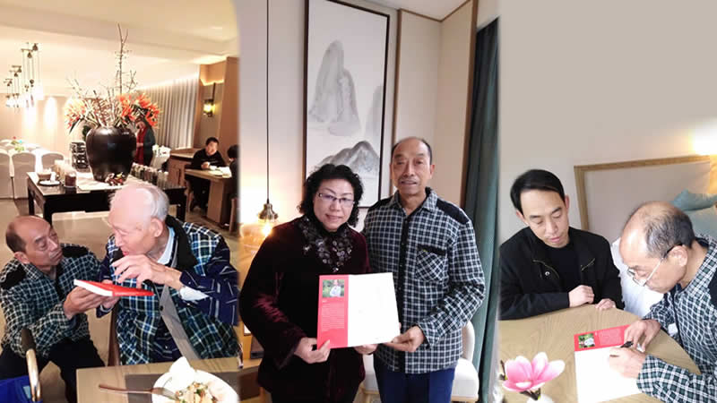 图9:刘友开陈素珍夫妇向陶行知先生孙女陶铮老师(中)赠诗集