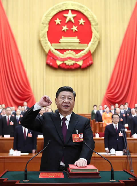 图一:2018年3月17日国家主席习近平同志在北京人民大会堂带头宪法宣誓接受人民监督