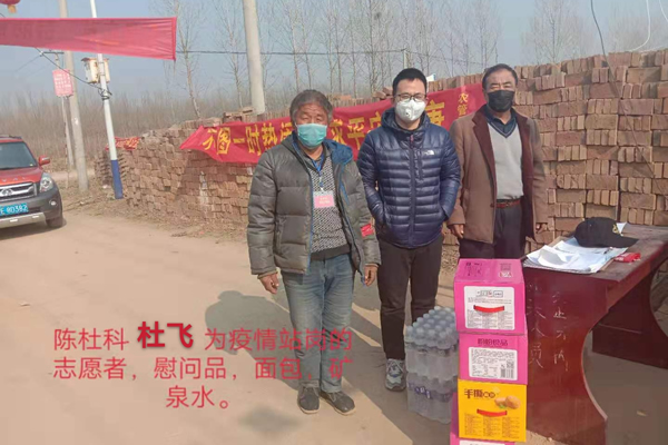牛中社3月29日讯(通讯员甘当梯)2月12日,为感谢在平凡的岗位上参加抗疫的村民志愿者,中国民主同盟盟员、心贴心(北京)健康科技有限公司创始人杜飞先生驱车来到河北省邢台市任县西固城乡陈杜科村,向日夜执勤的家乡村民志愿者送来了面包、点心、矿泉水等慰问品,杜书记和村主任出席并代表村民接受了捐赠物资。 杜飞先生表示,庚子年2020是个不寻常的一年,突如其来的公共卫生流行传染性新冠肺炎,打乱了所有人的生活节奏,也给乡村带来了恐慌。党中央高度重视,习近平总书记心系人民群众安危,时刻关注疫情形势和防控工作,亲自指挥、亲自部署、亲自推动。坚决打赢疫情防控阻击战,全国上下,齐心协力,万众一心,众志成城,抗击疫情,全国抽调医护人员4.2万余人支援武汉抗击疫情,村民在家不扎堆,不聚会就是支持党中央,支持武汉,我们要共同为武汉加油!相信武汉必胜,湖北必胜,中国必胜! 村干部非常感谢杜飞先生关爱家乡,村干部告诉杜飞,1月23日武汉开始封城,新冠肺炎疫情在中国传统节日——春节大爆发,村民听党支部的话,取消了拜年活动,控制了人群流动,拜年问候都是互打电话。这场疫情,引起全民恐慌,应该是近百年来前所未有的。村民遵照钟南山、李兰娟院士等专家普及的科学预防知识,戴口罩,勤洗手,勤通风,不去人多的地方聚集,都老老实实待在家里,照顾好家人和自己,这就是省得给医务人员添麻烦,也是为抗疫做贡献。 民盟创始人之一、爱满天下的“伟大的人民教育家”陶行知先生徒孙、教育部系统原《中国教育》副总编、213关爱医务人员节首倡者、村民在线创始人唐良闻表示自己和全国青年村民代表都应向民盟老朋友、爱心人士杜飞先生学习,学习他懂得感恩,不忘初心,热爱家乡,关心村民的优良品质。唐良闻并邀请杜飞共同倡导213关爱医务人员节、华人安康节(农历三月初三)、520世界爱心日。(编辑:马义豪) |