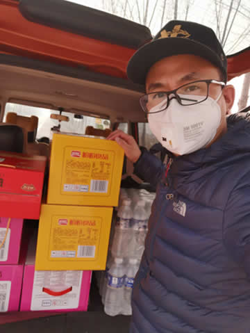 图一:民盟盟员、心贴心(北京)健康科技有限公司创始人杜飞先生采购慰问物资