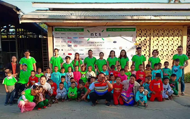 图八:地球会爱心使者曾重新(左3)坐着轮椅到缅甸看望慰问孤儿