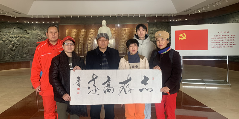 从唐山到天津创办地龙力生物工程的贾立明董事长带领一群青年在李大钊1916年所写的散文《青春》石碑前合影。贾立明还带队专程去了大黑坨村参观李大钊故居。唐良闻代表地球会俱乐部向贾立明赠送了唐山之父《唐廷枢传》、书法家鲁者老师新年作品《志存高远》。王明华代表地球会俱乐部向青年代表赠送了《李大钊》电子出版物。青年们读着李大钊所写“以青春之我,创建青春之家庭,青春之国家,青春之民族,青春之人类,青春之地球,青春之宇宙”感到很振奋。
